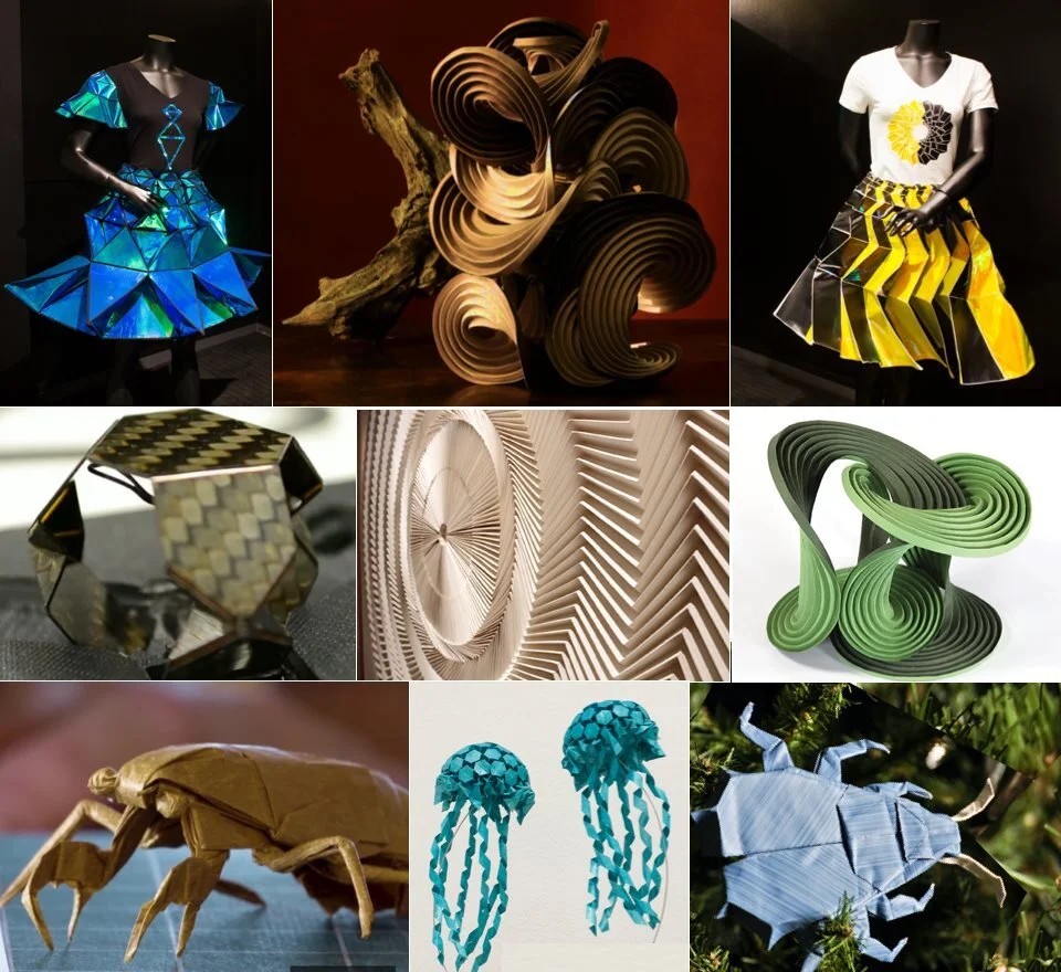 MoMath: the National Museum of Mathematics showcases notable examples of mathematical origami art through 1/5. Robotician Jamie Paik and her team drew inspiration from origami designs to create "robogamis": folding robots made from ultra-thin materials that can reshape and transform themselves; check out their TED Talk here.